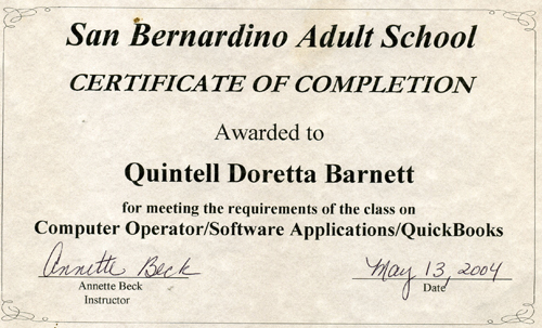 Teacher Annette Beck Quick Books Accounting finish May 2004 |