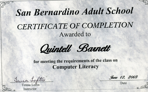 Teacher Teresa Loftis Computer Literacy finish January 2003 |