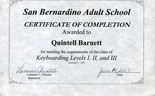 Teacher Lorrine Christie Keyboarding I, II, III finish June 2007 |